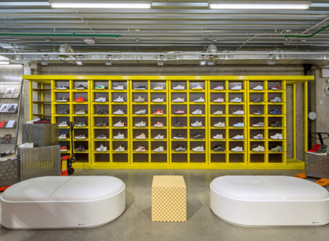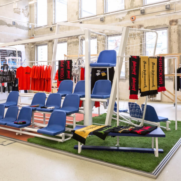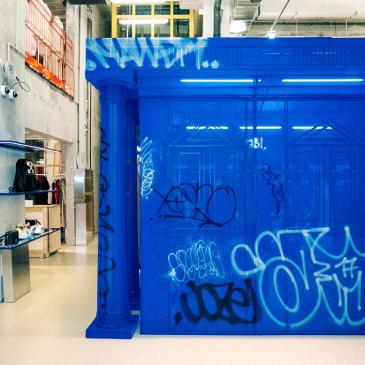На первом уровне представлены актуальные стритвир бренды со всего мира, такие как KidSuper, Rhude, Tightbooth, ADERERROR, STÜSSY и другие. Здесь же находится сникер-зона с последними релизами кроссовок спортивных гигантов и нишевых уличных брендов. На втором уровне, с восьмиметровыми потолками и двумя рядами окон, собраны бренды уровня выше: Raf Simons, Dries Van Noten, Coperni, Jean Paul Gaultier, Maison Margiela, Diesel и другие. Многие из этих брендов разработали уникальные концепции корнеров с участием молодых художников со всего мира.